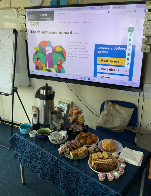 As part of their Lenten almsgiving, Year 4 created a thoughtful business plan to raise funds for a meaningful cause. They organised a coffee morning, selling homemade cakes and coffee to parents and carers, aiming to raise £10 to buy CAFOD’s “Gift of Reading,” which provides books and educational resources for those in need.